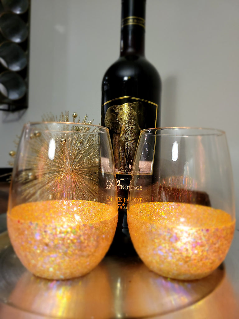 Looking for the perfect party gift? These Glittered dipped stemless wine glasses are a perfect match to bring some fun and style to your next round of celebrations.