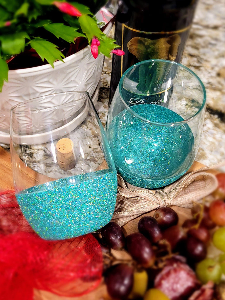 Aqua - 21 Oz. Handmade Glitter Dipped Wine Glass (single)